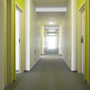 Rooms of the venue have carpeted floors and bathrooms with a separate toilet and a shower.